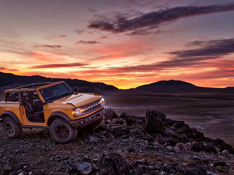 The Sasquatch package is available on all Bronco trims — it’s standard on Wildtrak and First Edition models — and features 35-inch tires, front and rear electronic locking axles from Dana, a high-clearance suspension with a nearly 2-inch wider track, position-sensitive Bilstein shocks and wider fender flares.