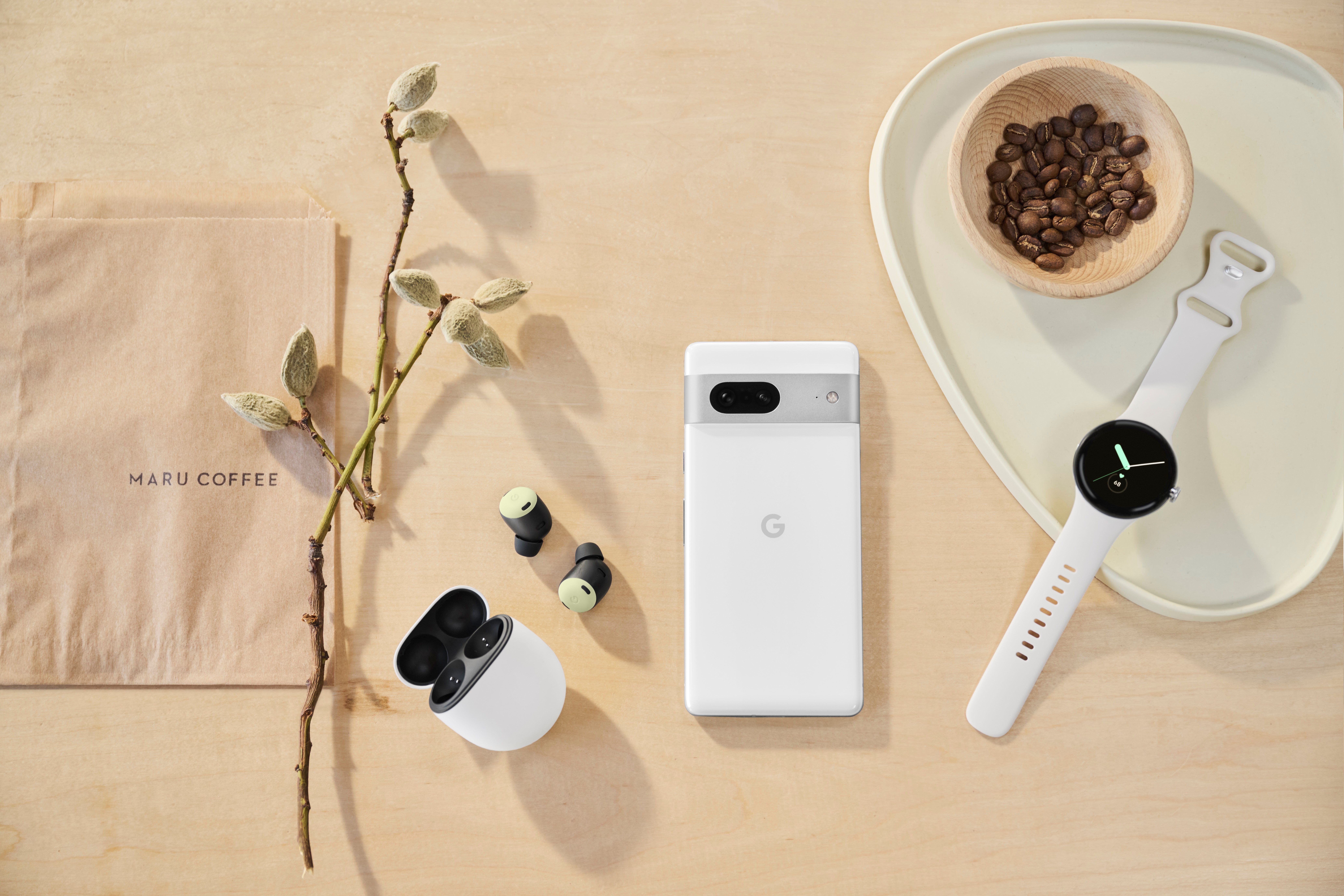 google-pixel-7-pixel-watch-pixel-buds-pro-coffee