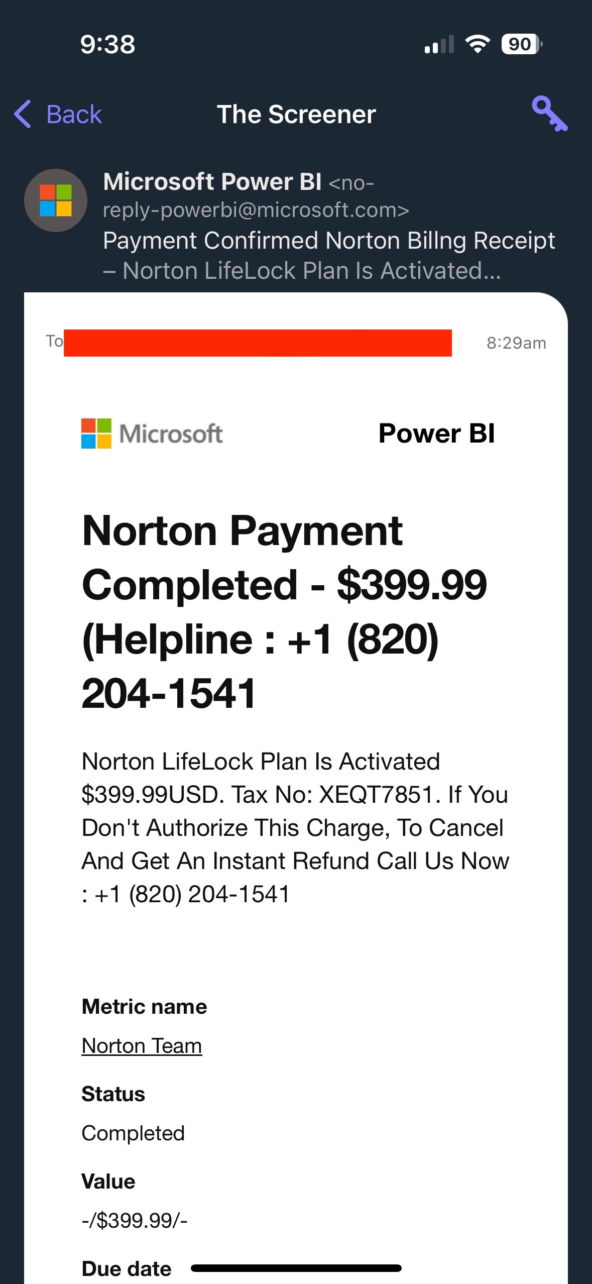 Sarah Sabotka, a threat researcher at security firm Proofpoint, said the scammers are abusing a Power Bi function that allows external email addresses to be added as subscribers for the Power Bi reports. The mention of the subscription is buried at the very bottom of the message, where it’s easy to miss. The researcher explained: