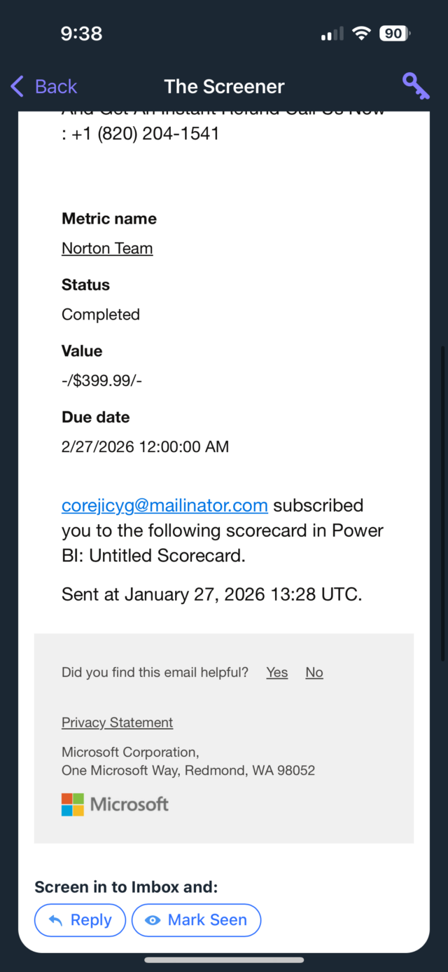 The emails originate from no-reply-powerbi@microsoft.com, an address tied to Power BI. The Microsoft platform provides analytics and business intelligence from various sources that can be integrated into a single dashboard. Microsoft documentation says that the address is used to send subscription emails to mail-enabled security groups. To prevent spam filters from blocking the address, the company advises users to add it to allow lists.